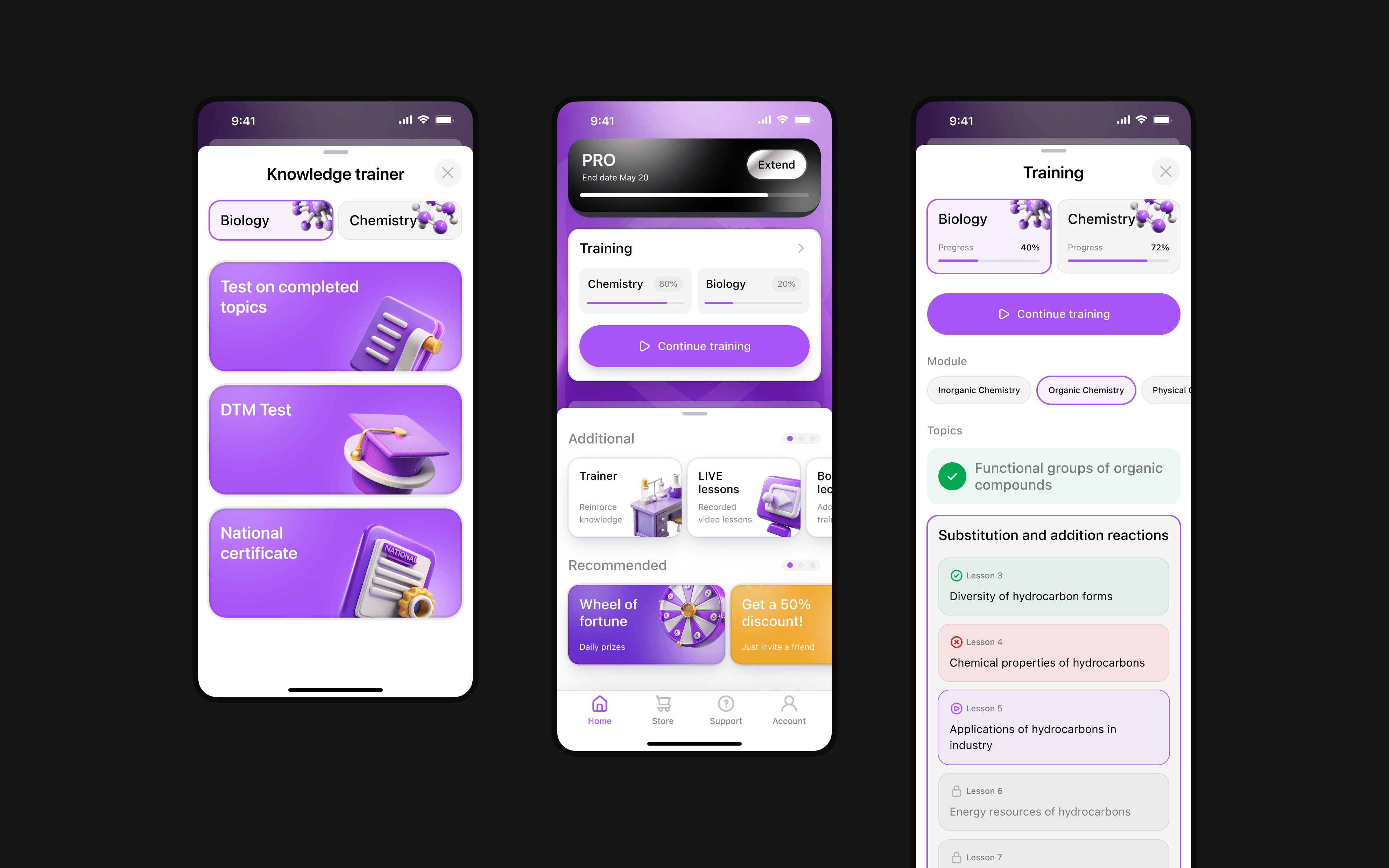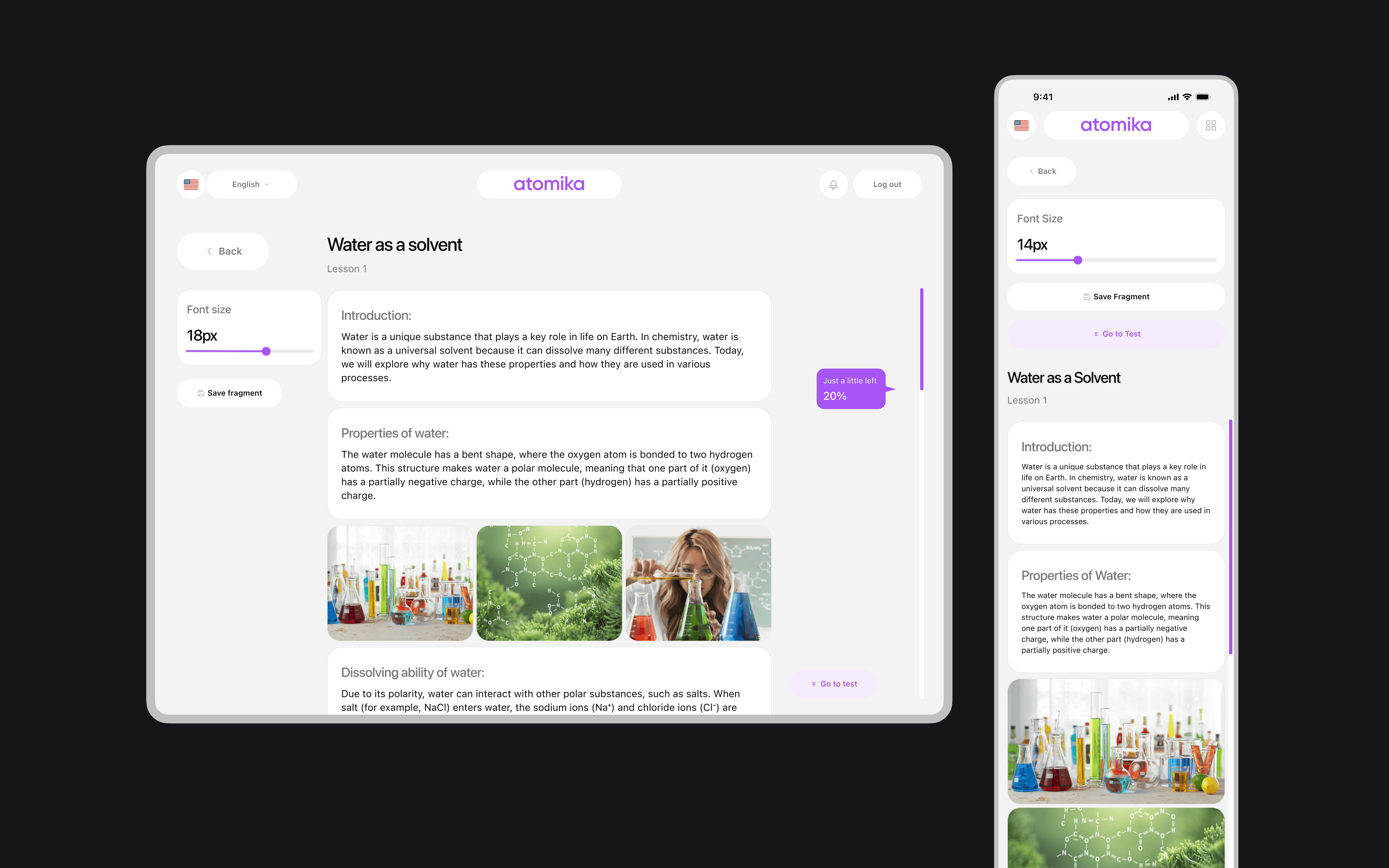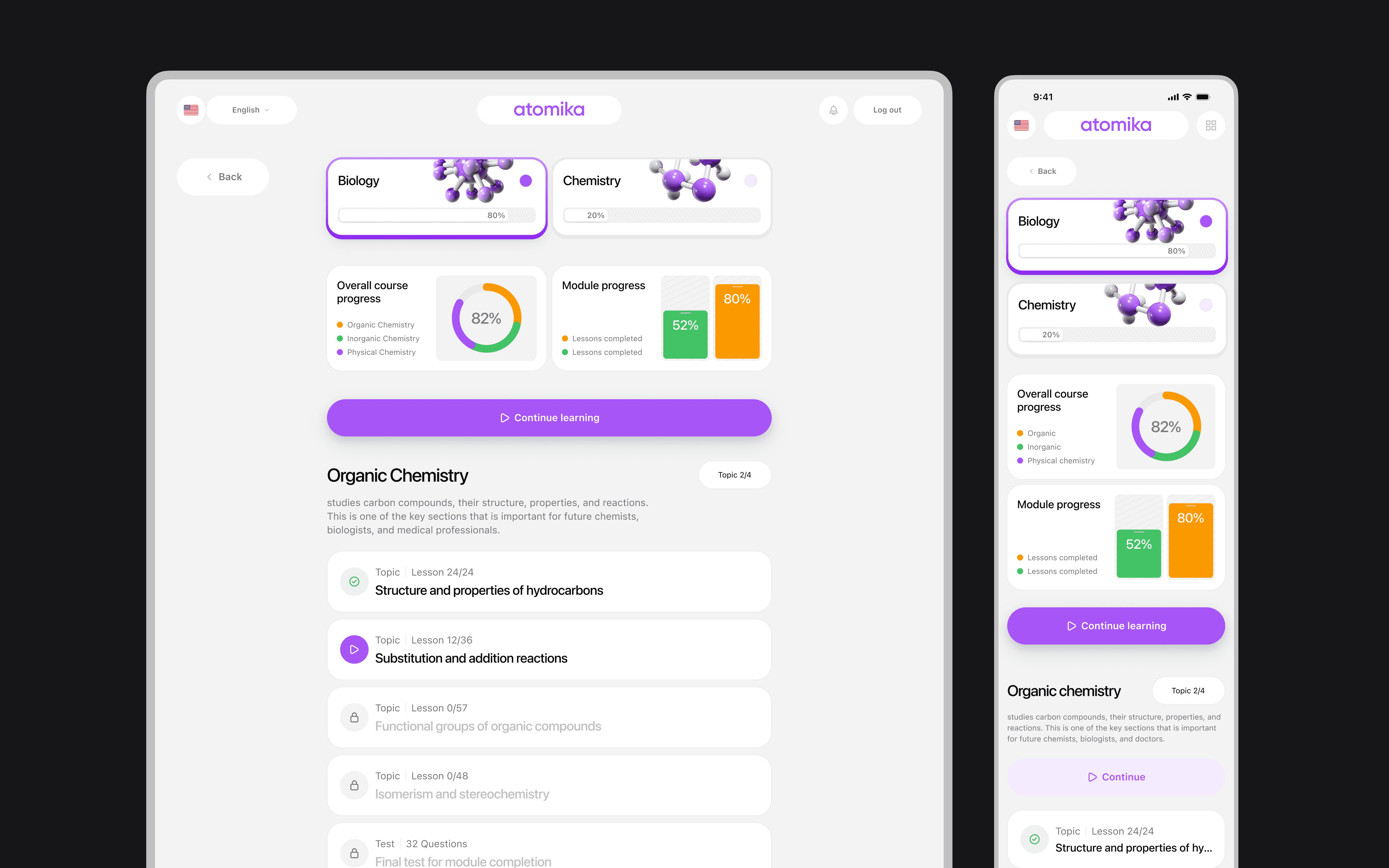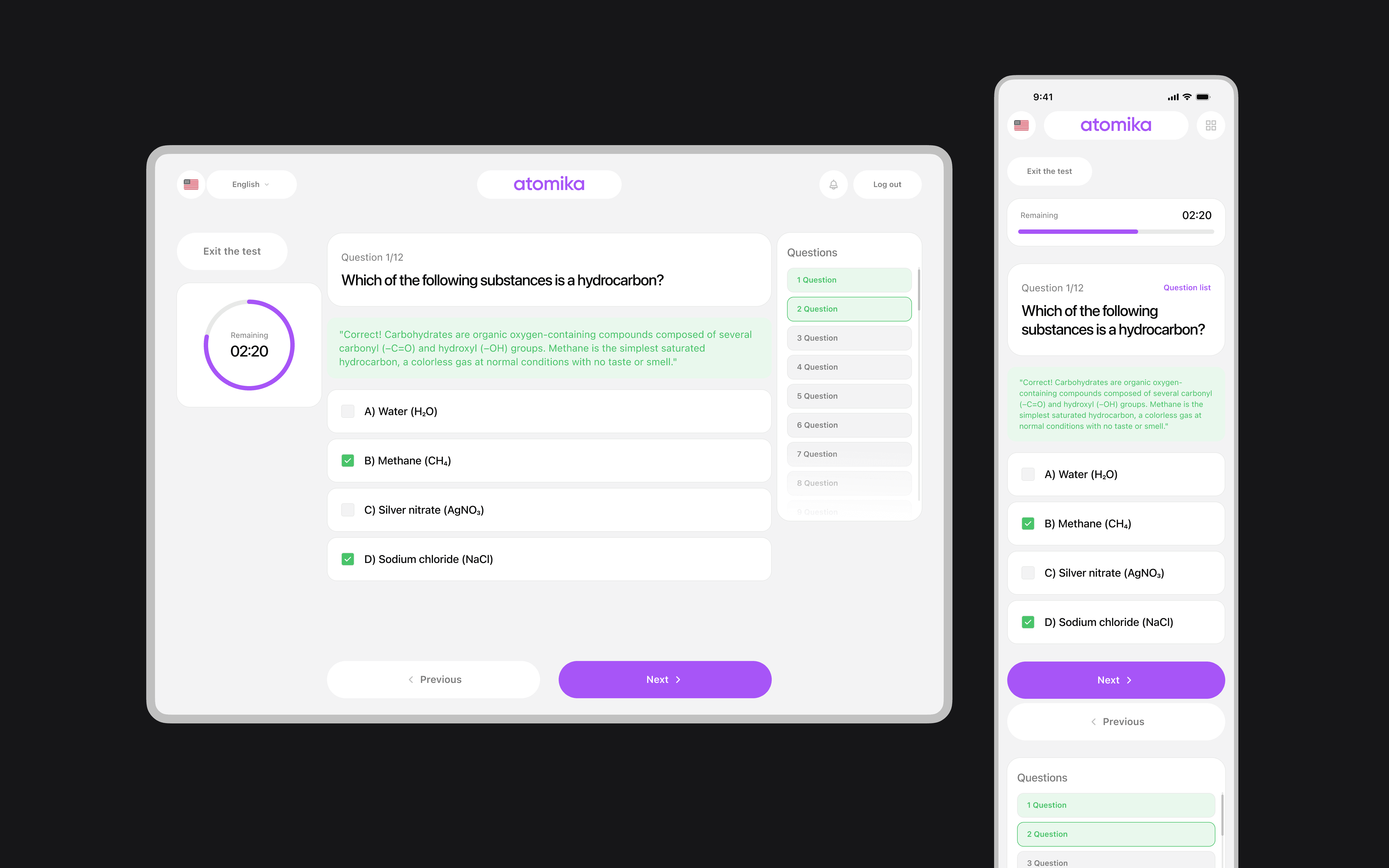Designed a Telegram-based version of the ATOMIKA platform to make chemistry and biology exam prep more accessible and closer to students’ daily habits. The app introduced Live lessons with real-time notifications and reused proven engagement mechanics from the web platform, driving ~30–40% user adoption and increasing lesson participation by ~25%.