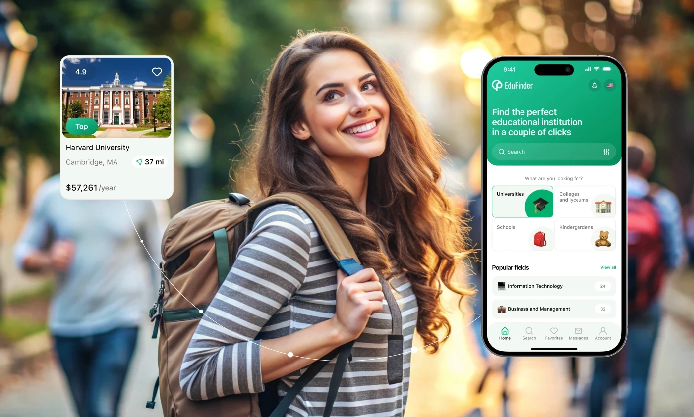 EduFinder makes it easy for you to find a school: a user-friendly interface, personalized recommendations and instant notifications of the best offers - so you can find the perfect place to study.