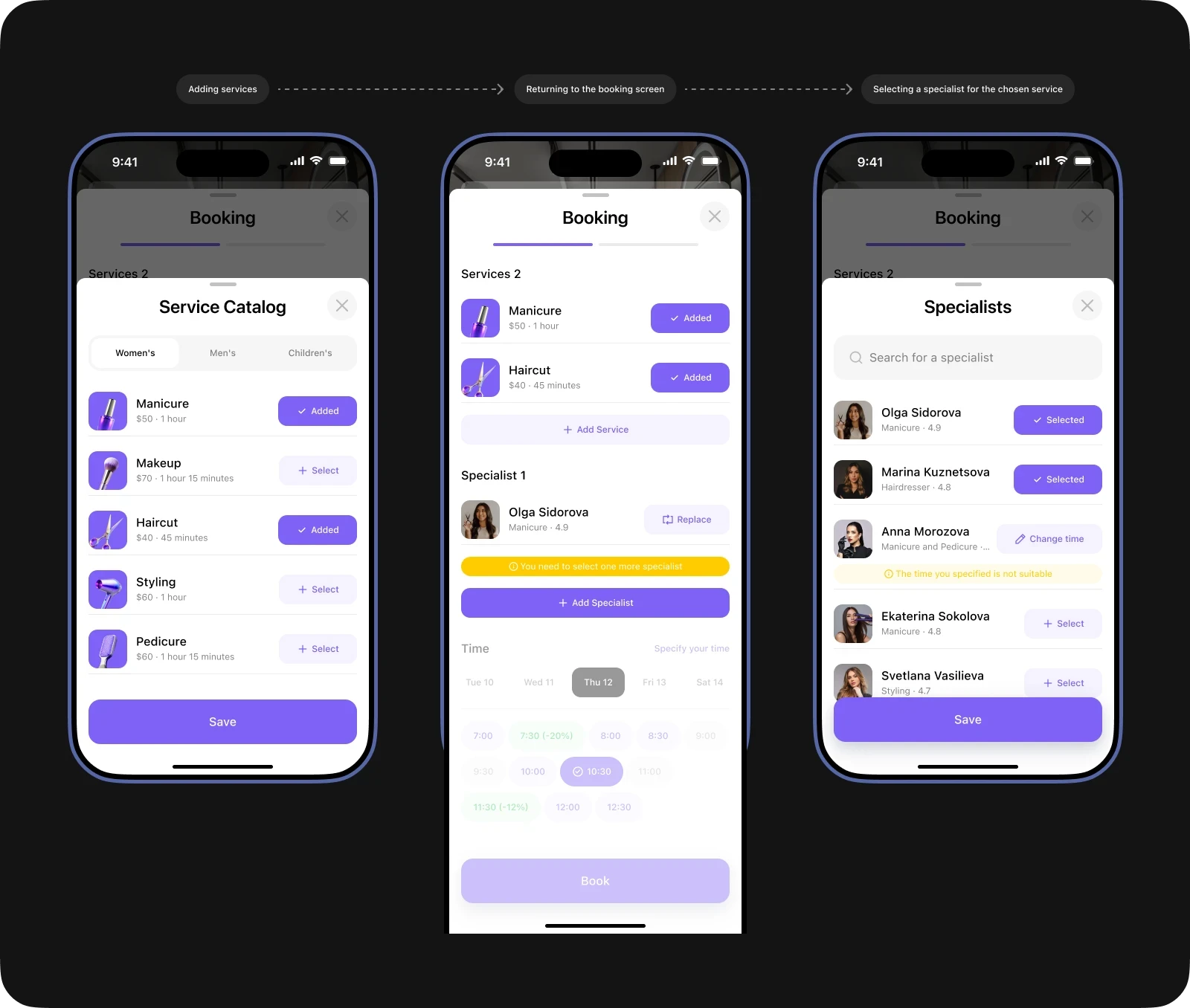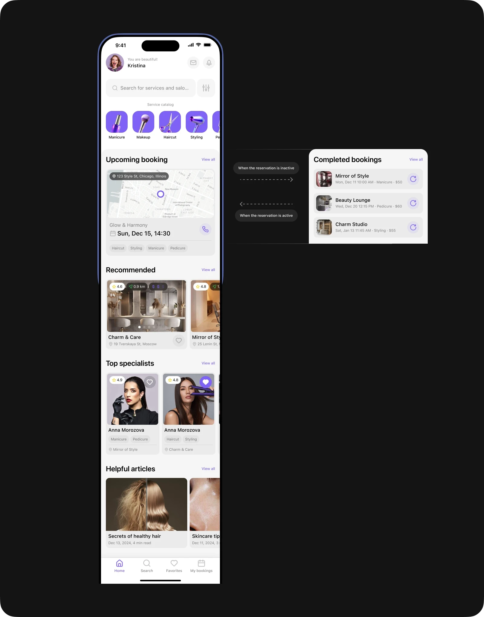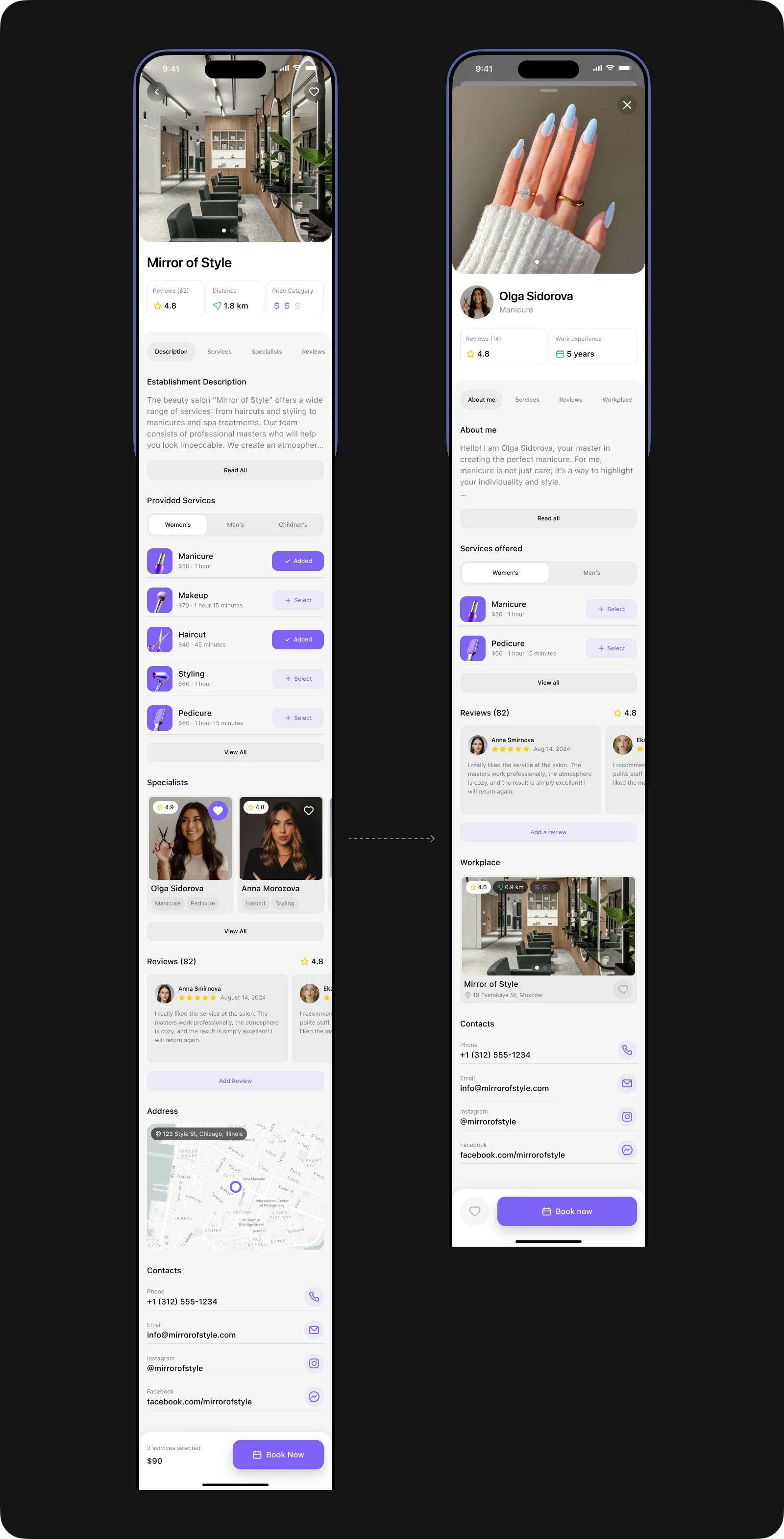While working on this project, I immersed myself in a new sphere for me and took into account all the nuances of the beauty industry. This allowed me to maximize the detail of user scenarios and create a solution that effectively solves the main problems of users.