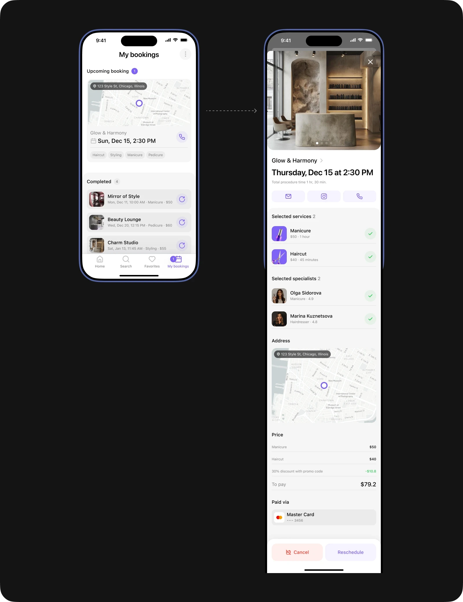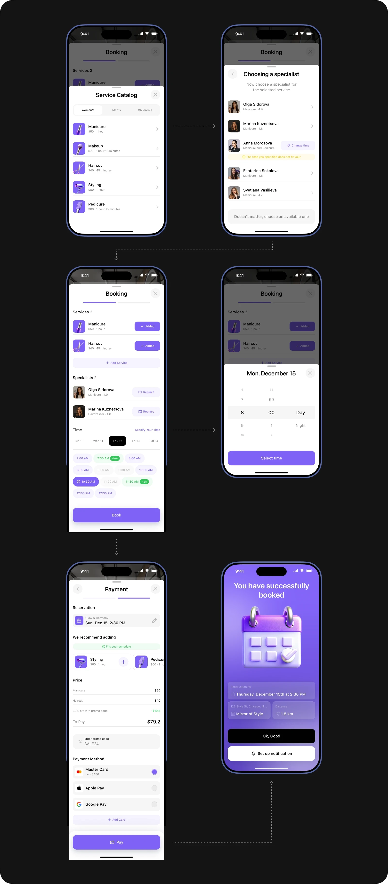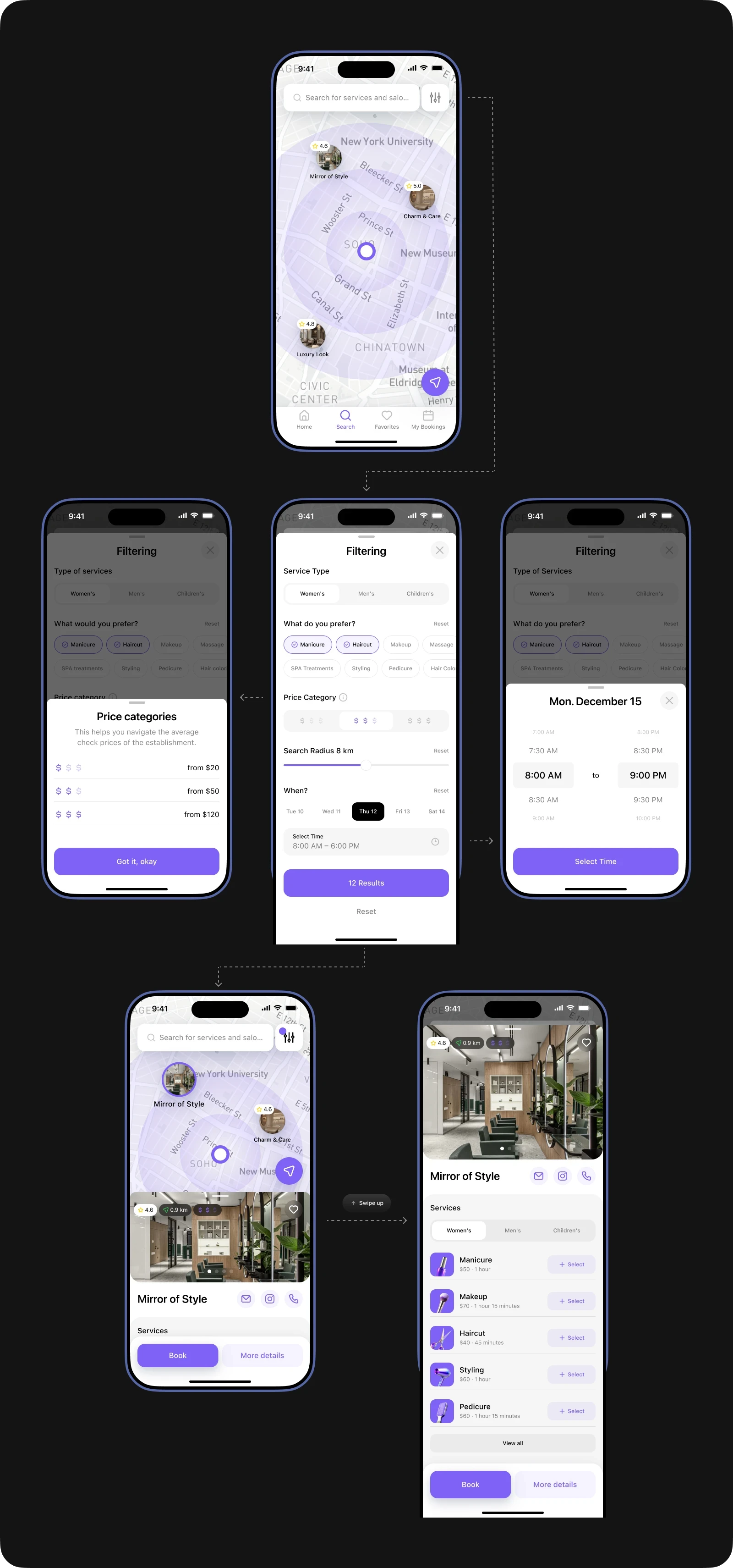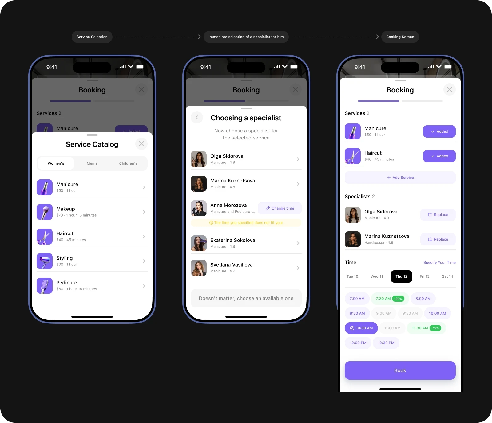 While working on this project, I immersed myself in a new sphere for me and took into account all the nuances of the beauty industry. This allowed me to maximize the detail of user scenarios and create a solution that effectively solves the main problems of users.