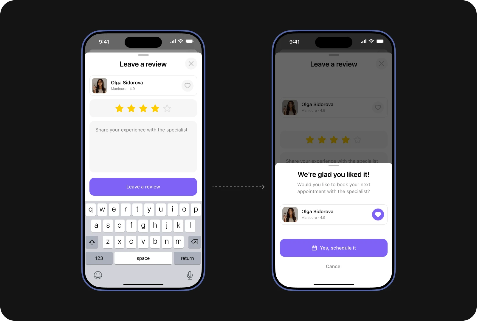Screens of leaving a review