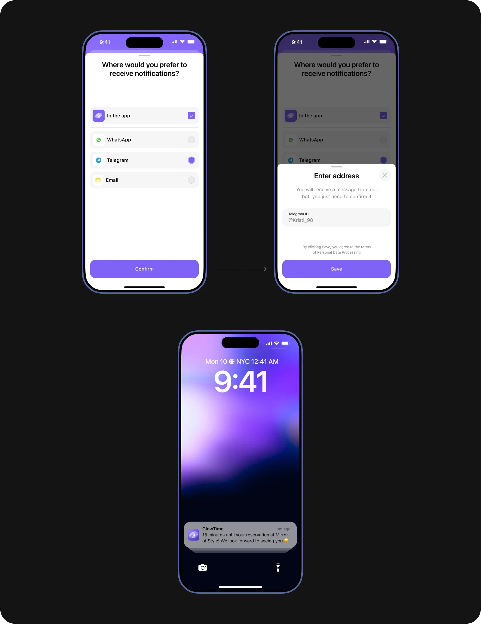 Ability to choose a convenient notification channel (mail, Telegram, WhatsApp).